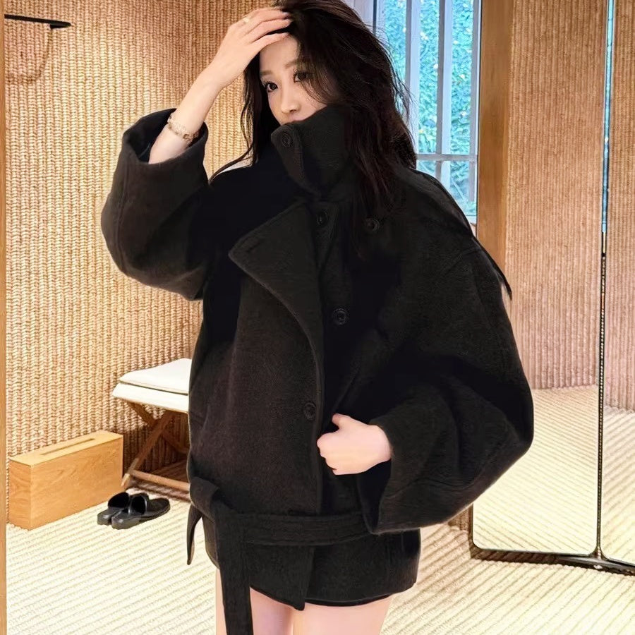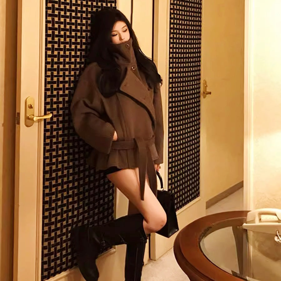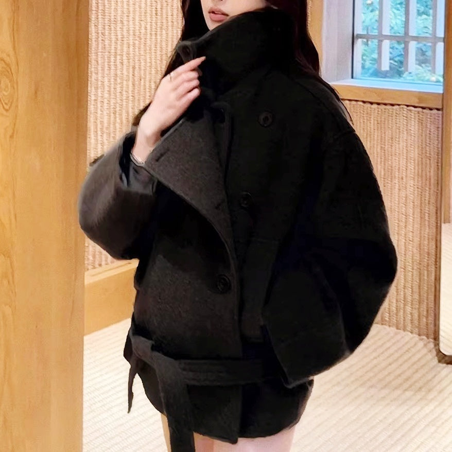 スタンドカラーベルトショートコート
